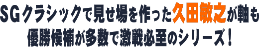久田敏之だ。3月に当地で開催されたSGボートレースクラシックでは、得点率14位タイで予選を突破。準優勝戦は5着でファイナルには駒を進められなかったが、最終日はイン逃げと4カドまくりで連勝。特にラスト走の特別選抜戦は持ち味を最大限に発揮したレースだった。3月終了時点での今期勝率は8.02と自己ベストを更新する勢い。参戦したばかりで調整も手の内に入れており主役の走りに期待したい。