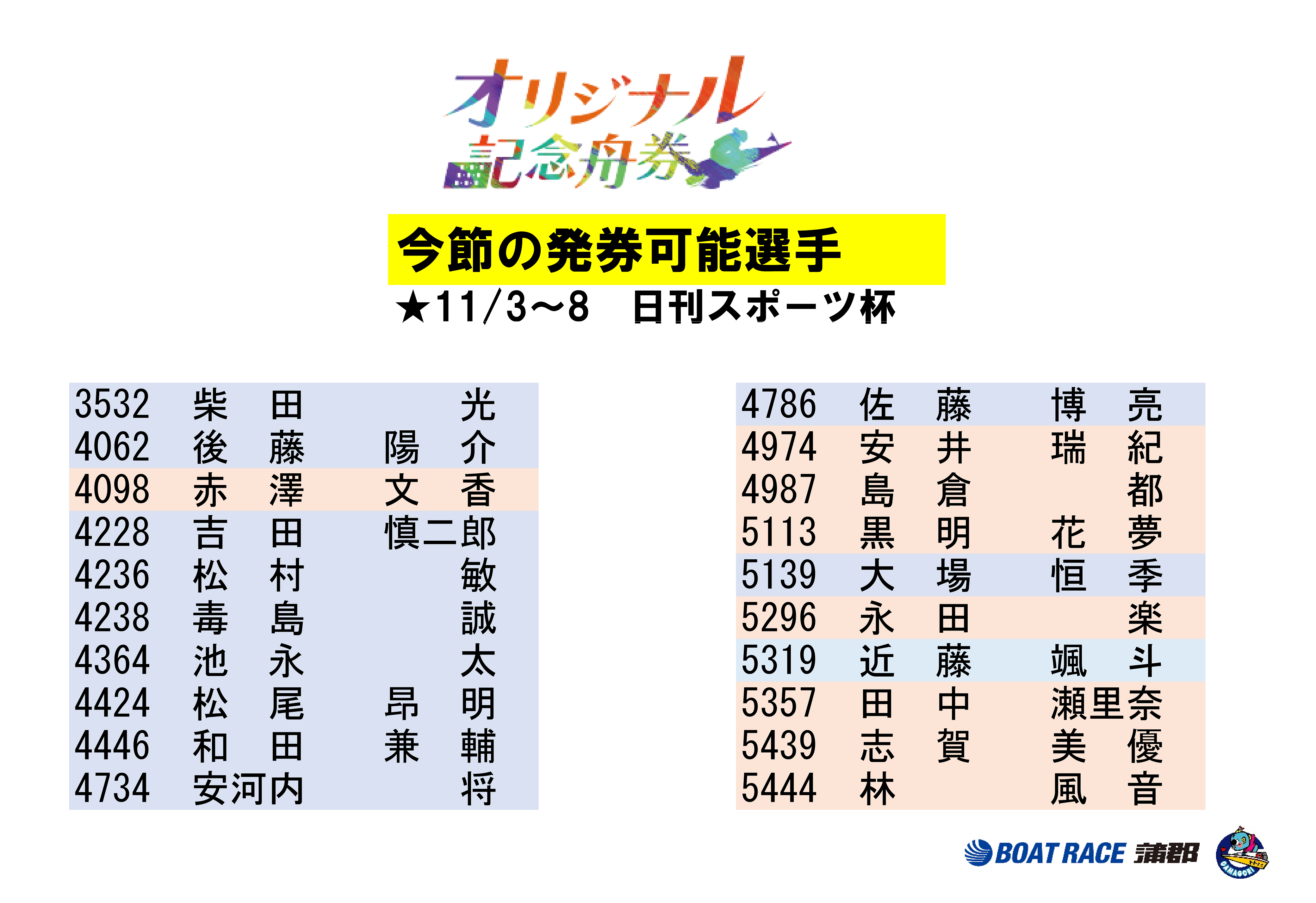 (1)今節のオリジナル記念舟券対象選手を予めご確認ください。発行機付近またはイベント&ファンサービスページに掲載予定です。
