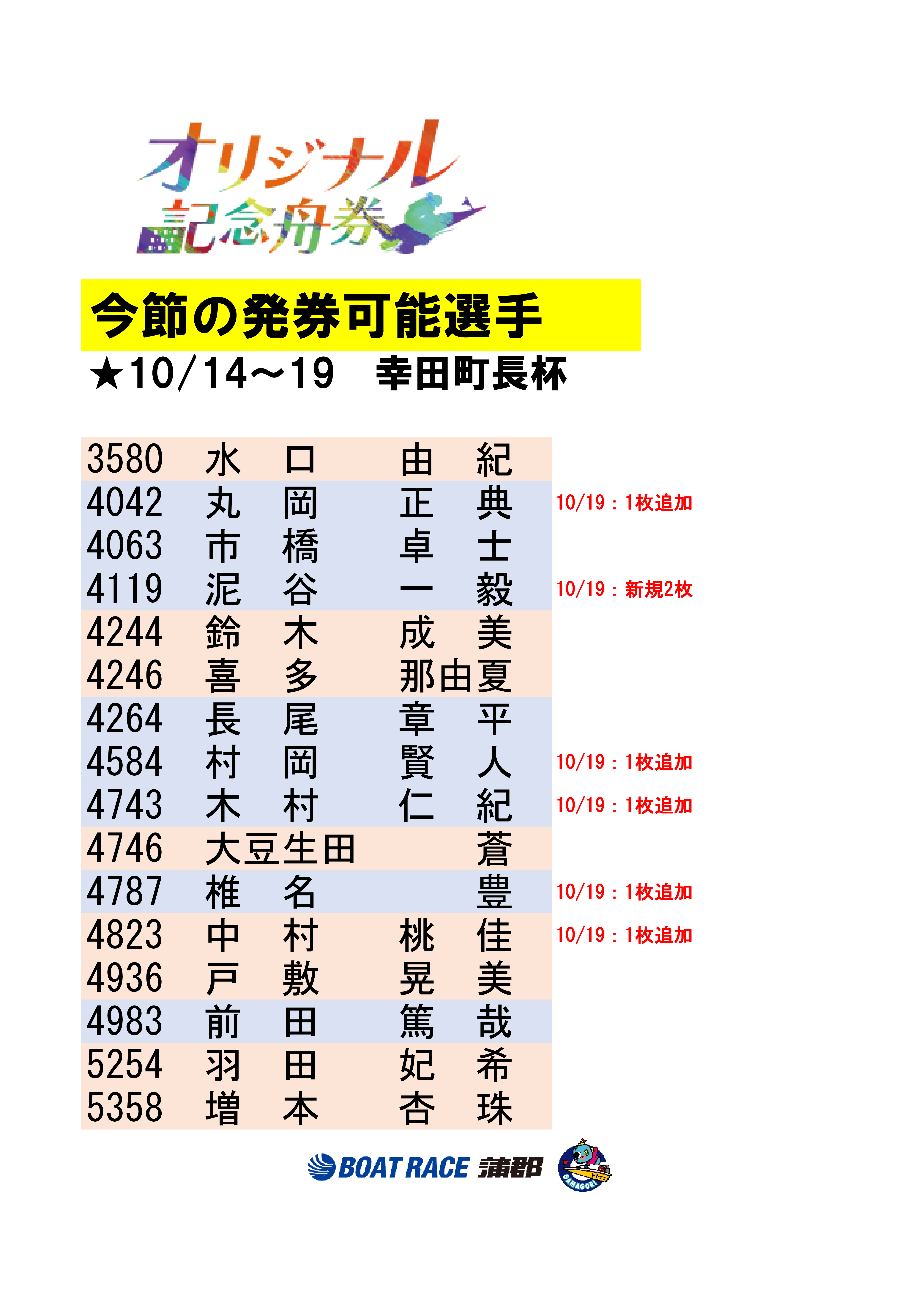【10月18日追記】優勝戦出場選手の券面を追加しました。