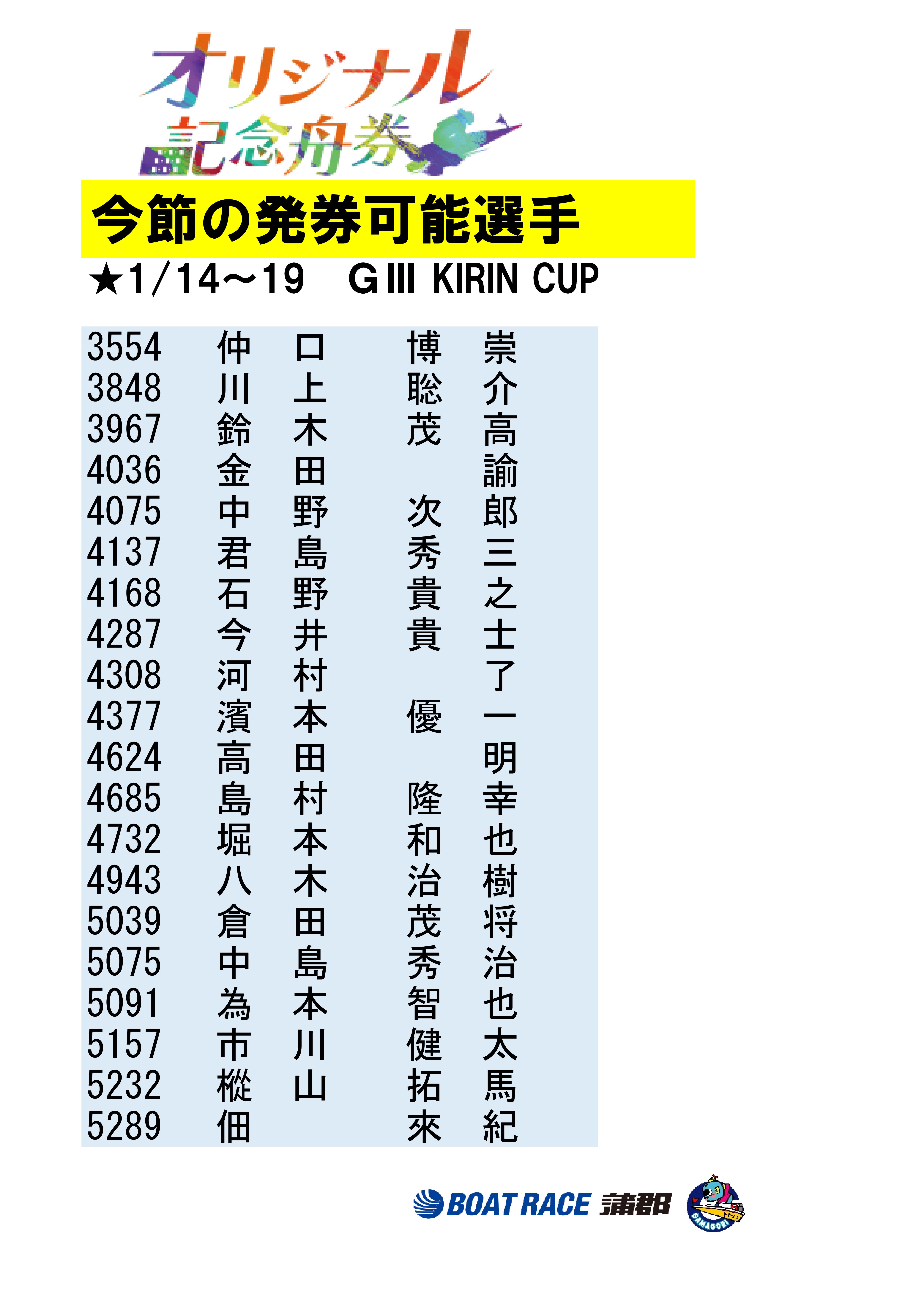 (1)今節のオリジナル記念舟券対象選手を予めご確認ください。発行機付近またはイベント&ファンサービスページに掲載予定です。