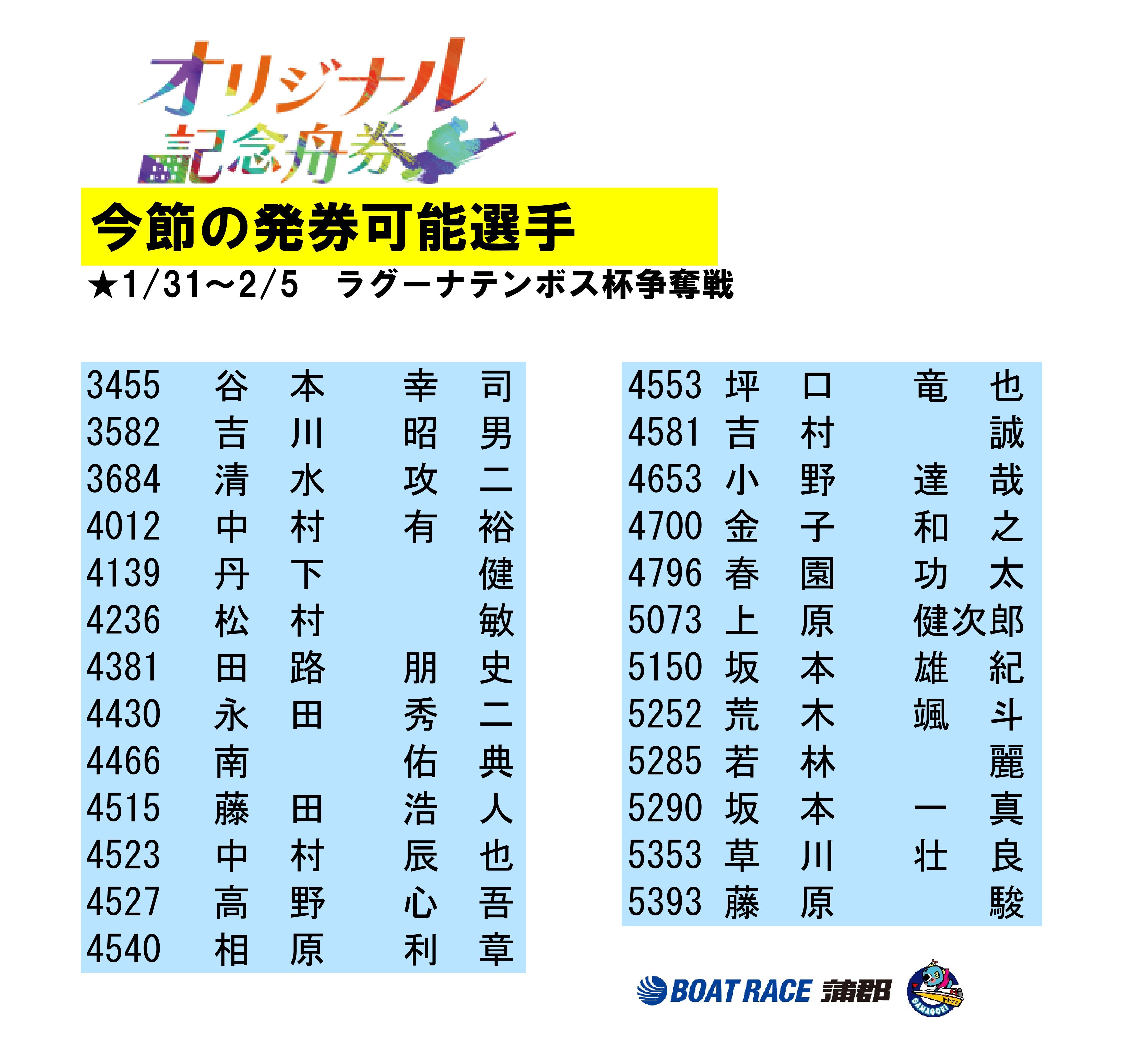 (1)今節のオリジナル記念舟券対象選手を予めご確認ください。発行機付近またはイベント&ファンサービスページに掲載予定です。