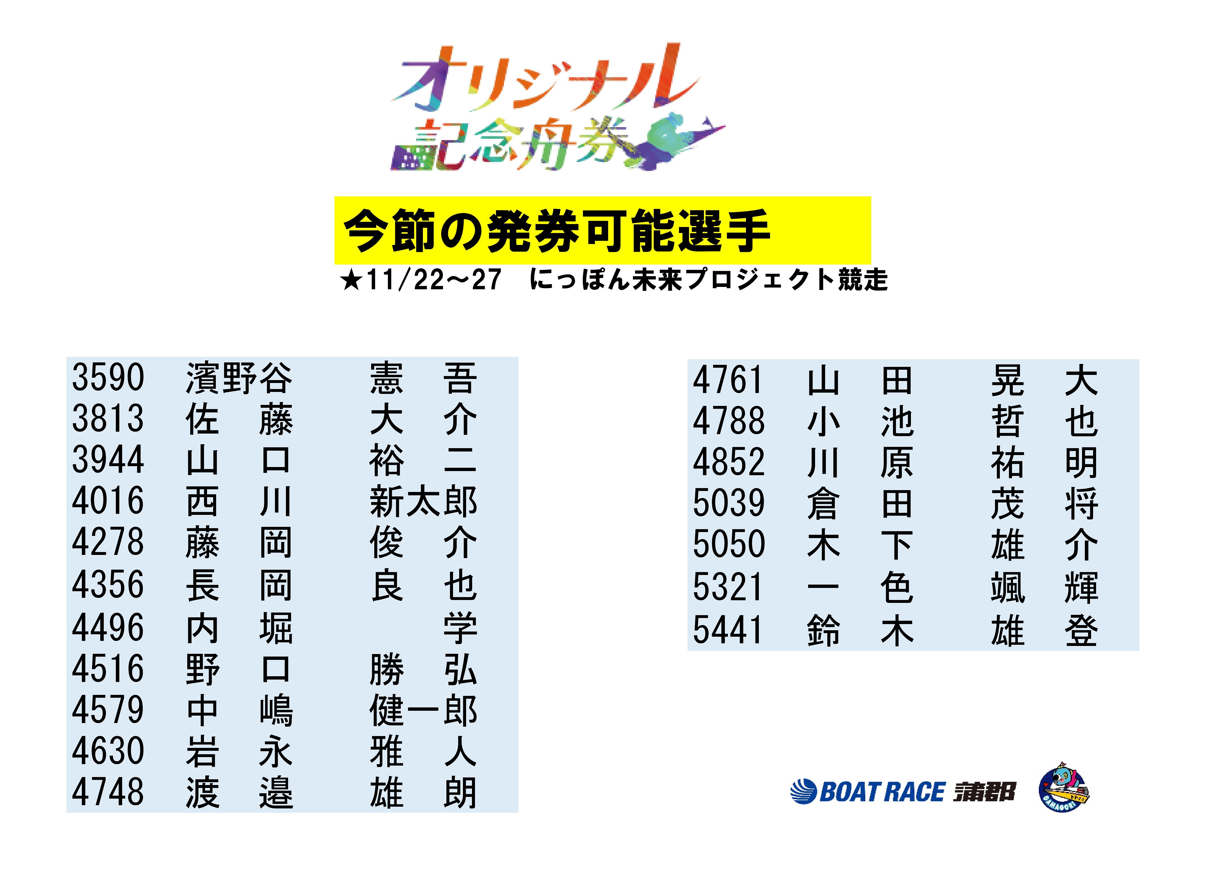 (1)今節のオリジナル記念舟券対象選手を予めご確認ください。発行機付近またはイベント&ファンサービスページに掲載予定です。