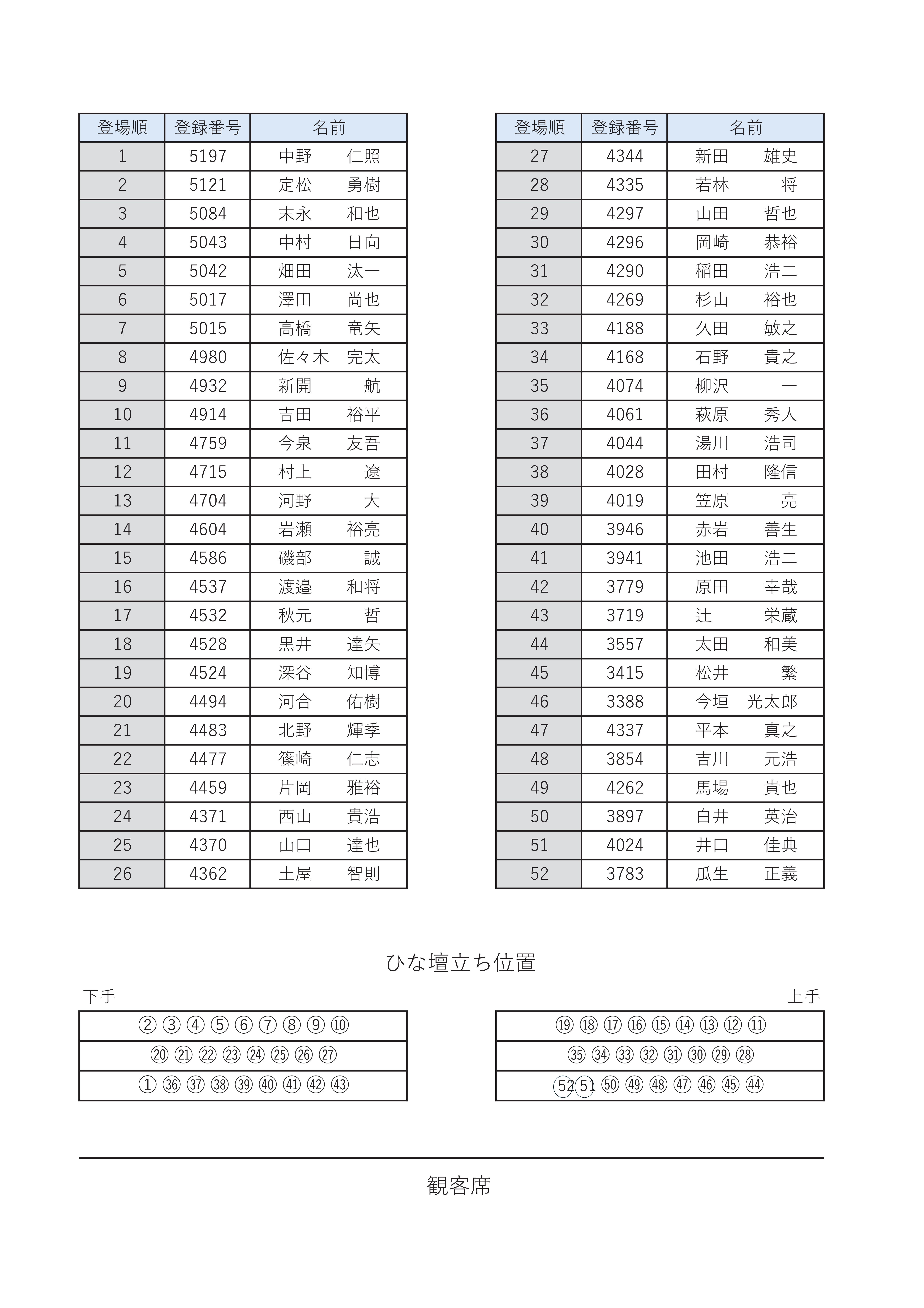 選手紹介時の登場順および立ち位置については<こちらをクリック>。