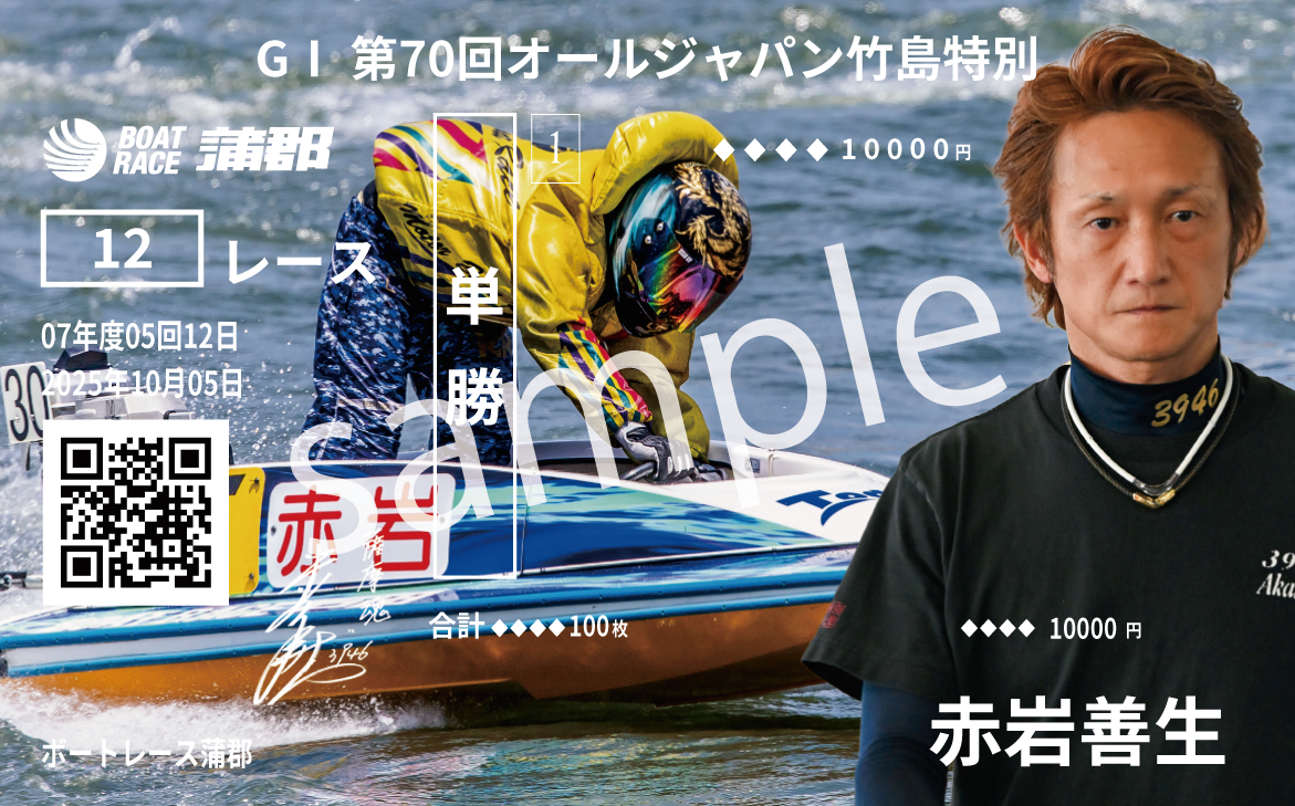 GⅠオールジャパン竹島特別開設70周年記念競走のノベルティとして、出場選手のトレーディングカードの配布を行います。