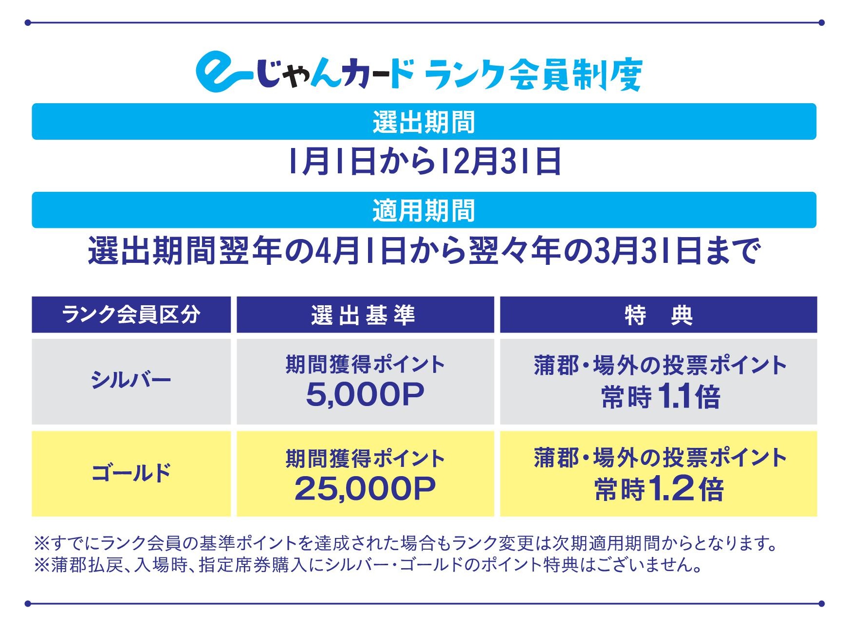 この度ギャンブル依存症対策として国・業界との協議に基づき、2027年3月31日をもってe-じゃんカードのランク会員制度及び特典(ポイント付与率常時1.1倍・1.2倍)を廃止させていただきます。