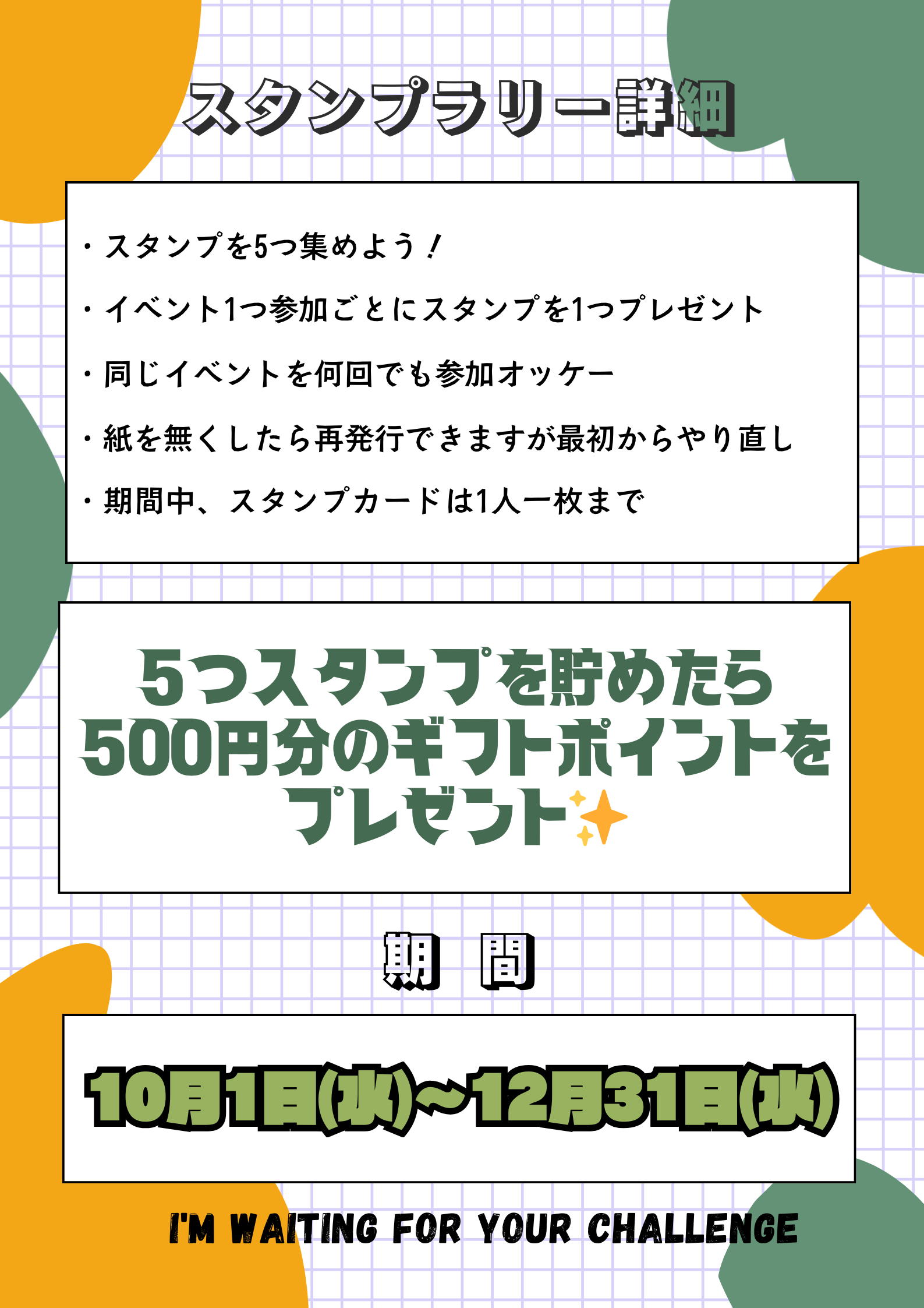 Gruunが主催するプログラム・イベントに参加しスタンプを集めていただきます。