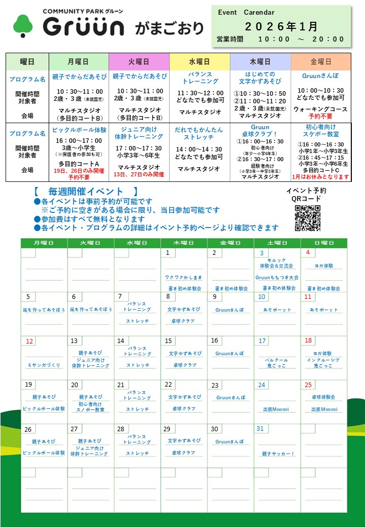 Gruunがまごおり1月イベントカレンダー