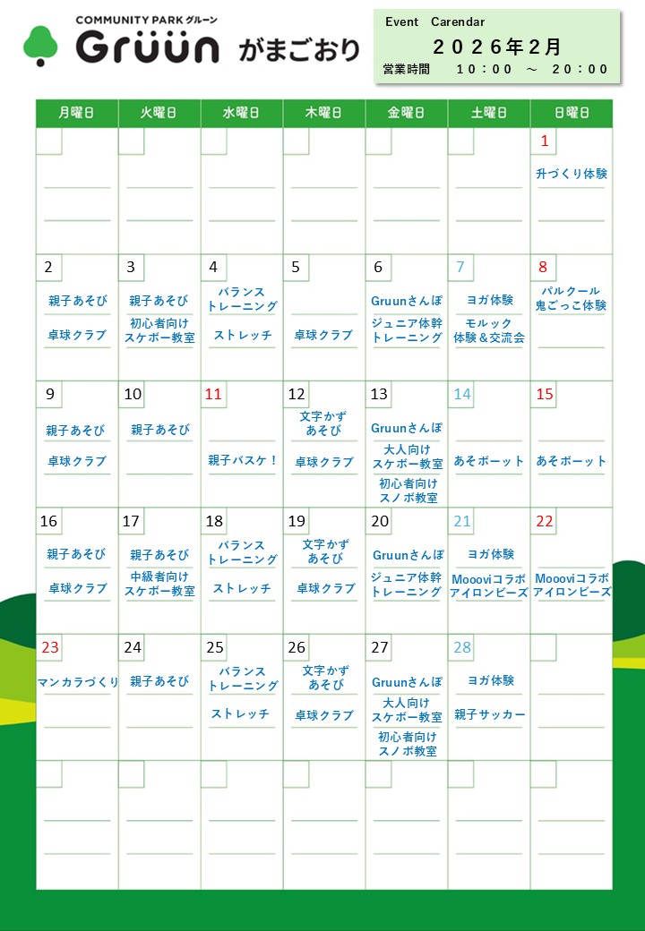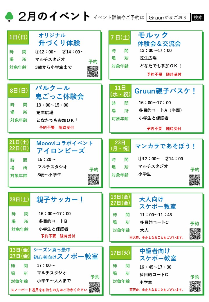 Gruunがまごおり2月イベントカレンダー