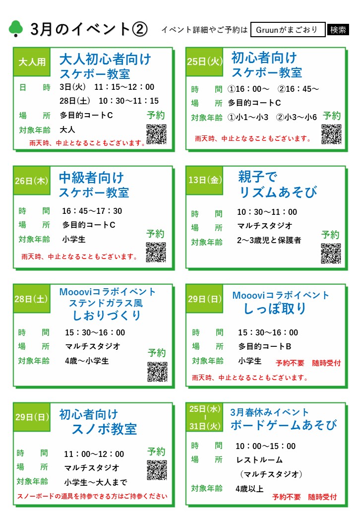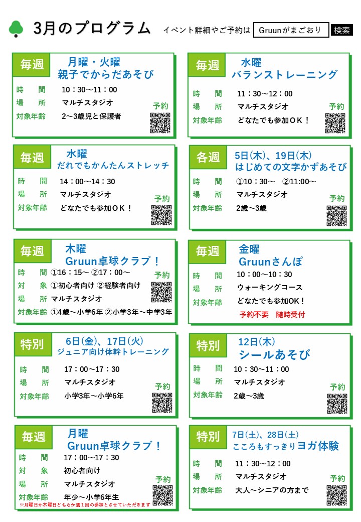 Gruun3月イベントカレンダー
